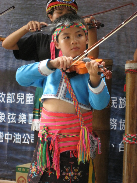 隆重的雙響竹砲,轟的一聲,營會現場,少多宜 團長風趣幽默的談笑主持,熱情如東海岸陽光般。小朋友們這3天,在這裡玩得非常高興,認識結交許多知心朋友。有一些原住民的小朋友,只有在書本上見過小提琴的模樣,大部分都是第一次實際碰觸到這件樂器,從夾琴、握弓、聽譜,然後拉奏出音樂,那種天生的音樂感受,讓每一位參與的老師都覺得,加以適當的訓練與學習,會達到一個完整的演奏水準,是可以預期的。陳志忠 老師教導他們學著拉奏提琴,在學習短暫的3天之中,對於未曾接觸西方音樂訓練的學生,獲得的信心與成就感,可以從他們表演時的眼神裡透露出來,也感受到他們深深愛上小提琴這般新奇的樂器。在這活動之前,少多宜 團長,並沒有向小朋友透露出,這麼一個訊息:這一批提琴原來就是將安排贈與且放置在kAKENG園區,提供給園區的學員來學琴的。而是希望先建立起他們對樂器的認識與珍惜的觀念。營會活動尾聲,每位同學輪流到營火前,說說自己的感想;這裡的餐點很好吃、認識許多新朋友、老師對我們都很有耐心、學打擊樂很好玩,、提琴發出來的聲音很好聽‧‧‧等,這是一個成功的夏令營,老師、家長與學生間都建立起新的經驗與感情。“ 把小提琴留下來!”卻是最讓我心疼的一句話,一位小女孩,害羞地低著頭,從人群裡緩緩走出,輕輕柔柔對著麥克風,說了出來。原來,單純的音樂感動,可以不需在富麗堂皇的音樂廳,不必是知名的演奏大師、深奧的音樂詮釋;這群天真的小朋友,透過小提琴,唱出他們生命裡的原住民血液,溢流的動人清妙旋律,才真是自然的樂音,生命之歌。